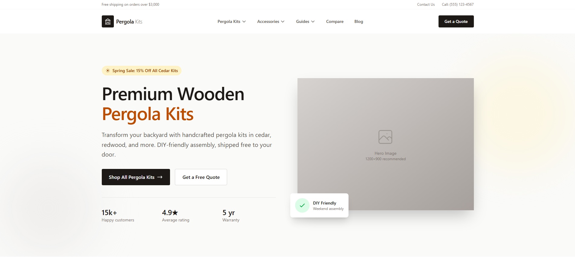 Initial mockup from scratch of a pergola kits eCommerce SEO optimized. Created with Astro, Tailwind with help of Claude.